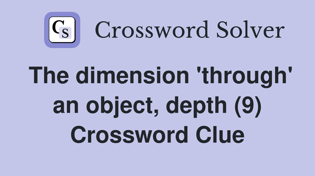 The dimension #39 through #39 an object depth (9) Crossword Clue Answers