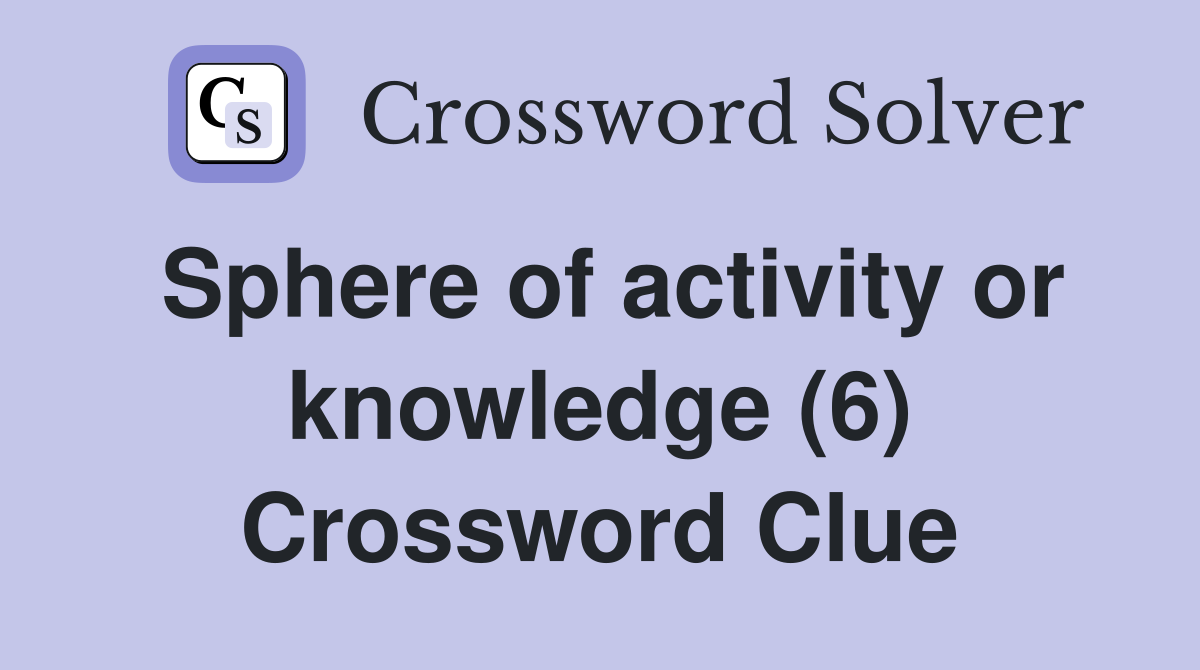Sphere of activity or knowledge (6) Crossword Clue Answers