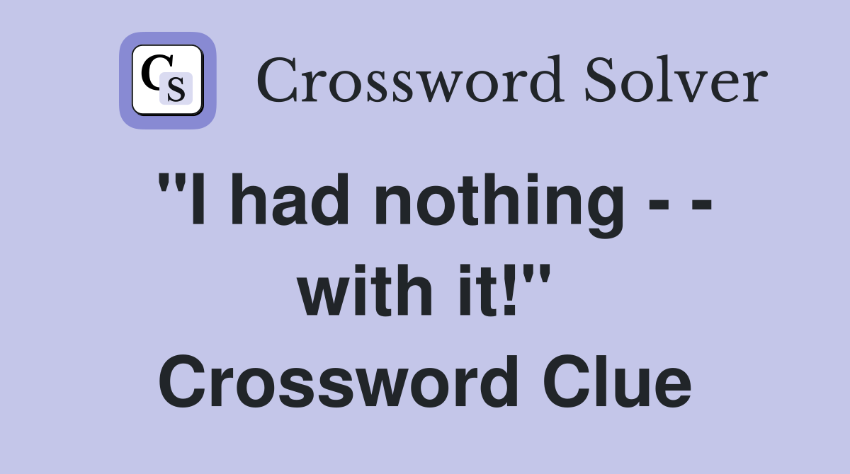 quot I had nothing with it quot Crossword Clue Answers Crossword Solver