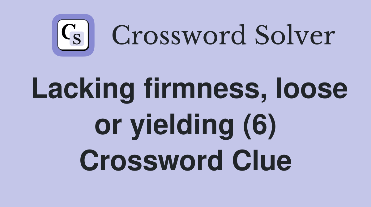 Lacking firmness loose or yielding (6) Crossword Clue Answers