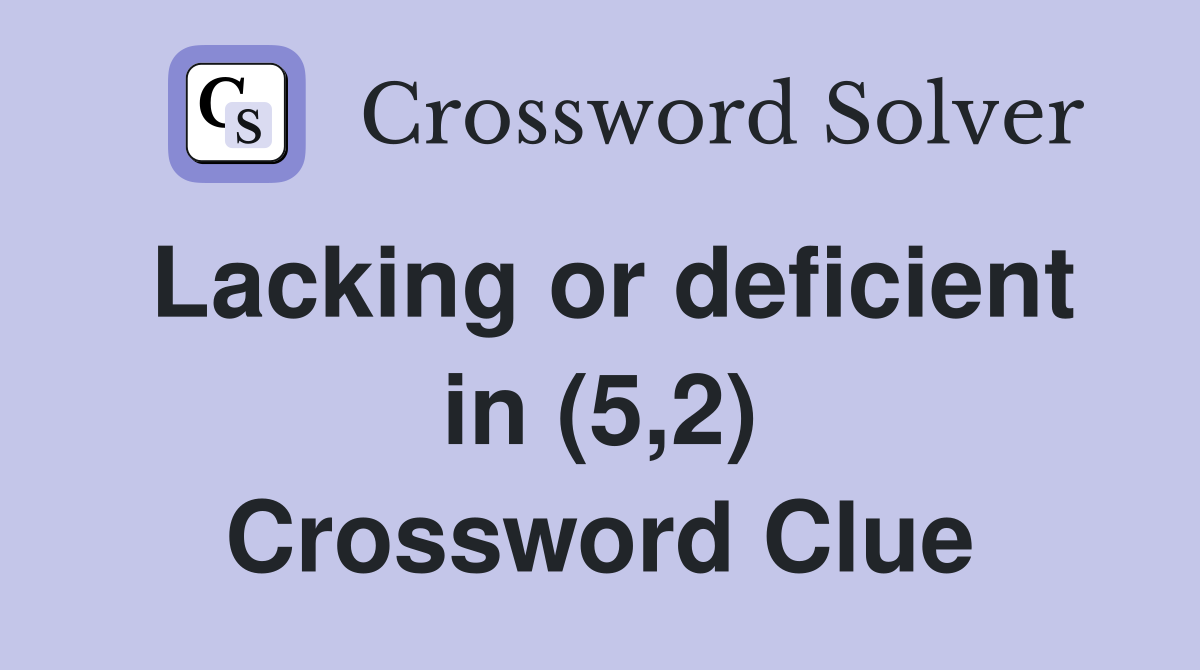 Lacking or deficient in (5 2) Crossword Clue Answers Crossword Solver