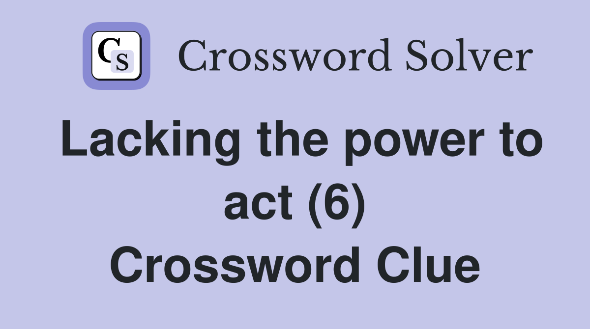 Lacking the power to act (6) Crossword Clue Answers Crossword Solver