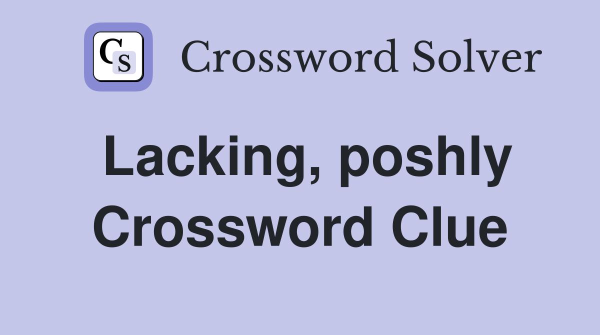 Lacking poshly Crossword Clue Answers Crossword Solver