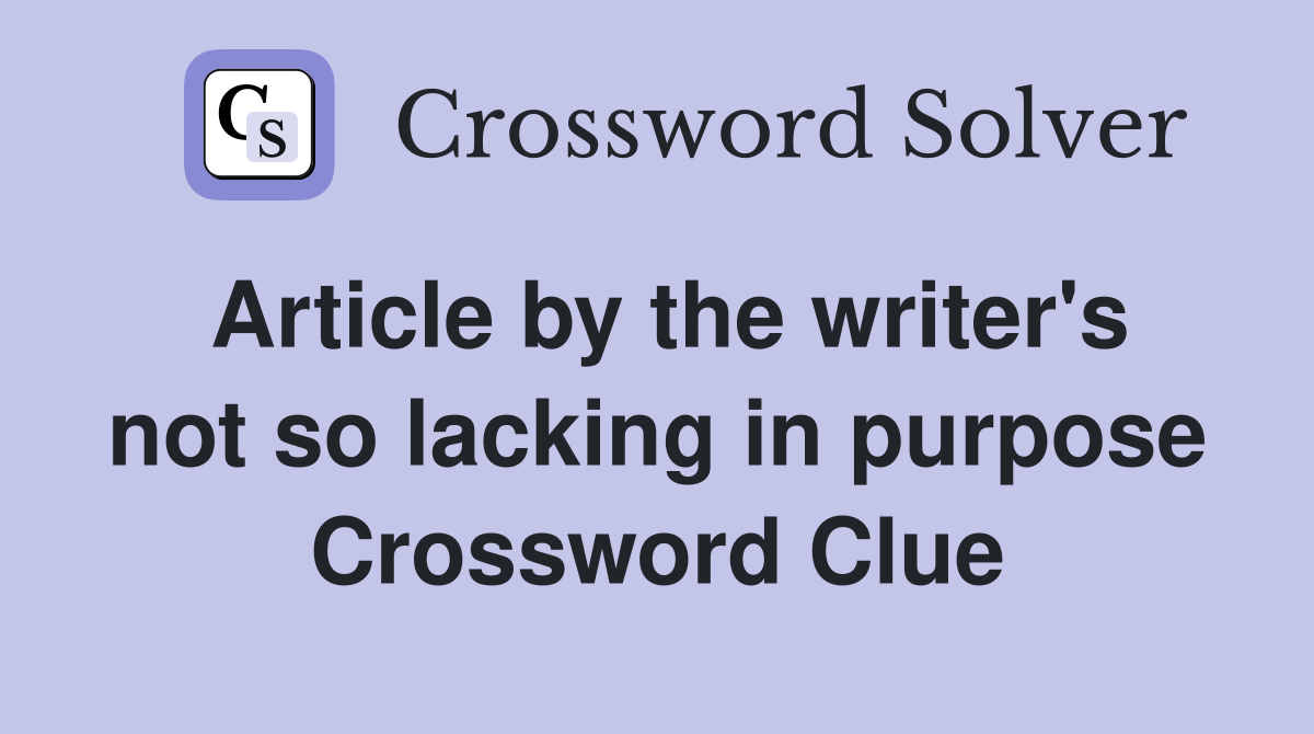 Article by the writer #39 s not so lacking in purpose Crossword Clue