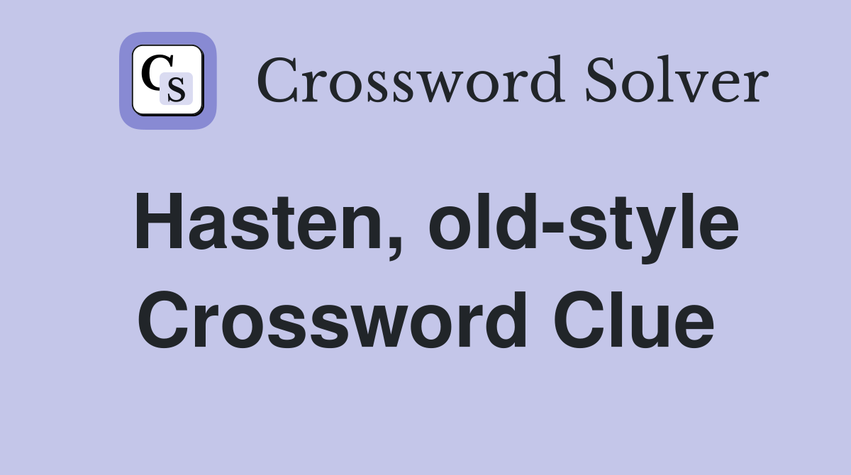 Hasten old style Crossword Clue Answers Crossword Solver
