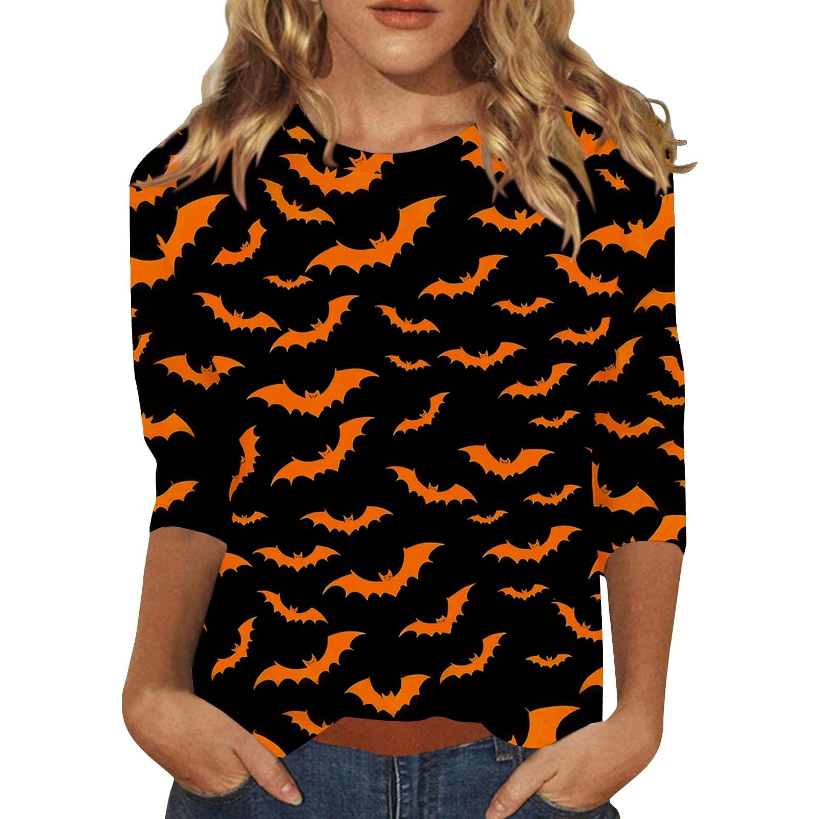AJHSAKLt Ladies Tops And Blouses Women #39 s Round Neck Printed 3/4 Sleeves
