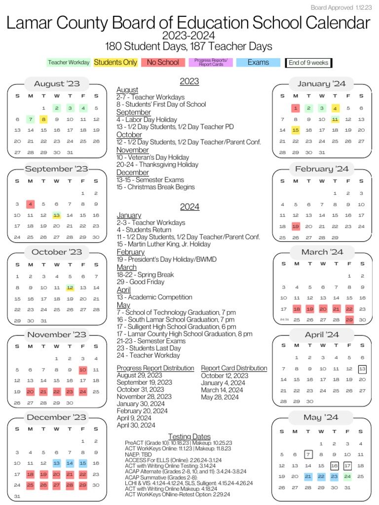 2023 24 School Calendar PDF Academic Term Educational Institutions