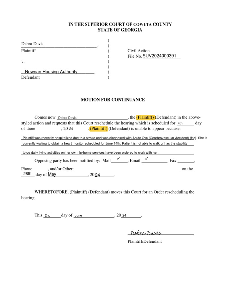 Motion For Continuance PDF