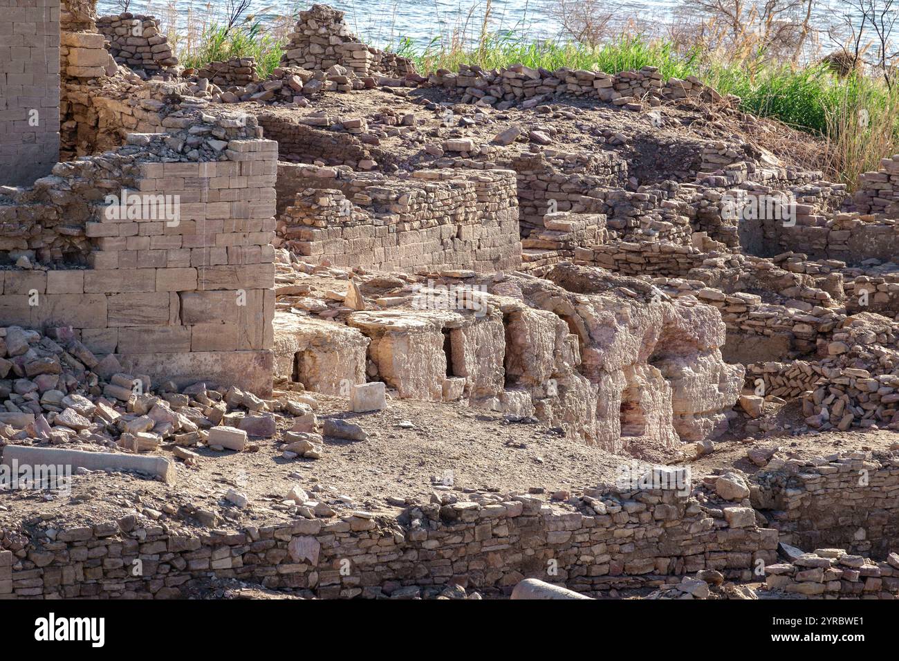 The ruins of Qasr Ibrim Fortress in Lake Nasser as seen from cruise