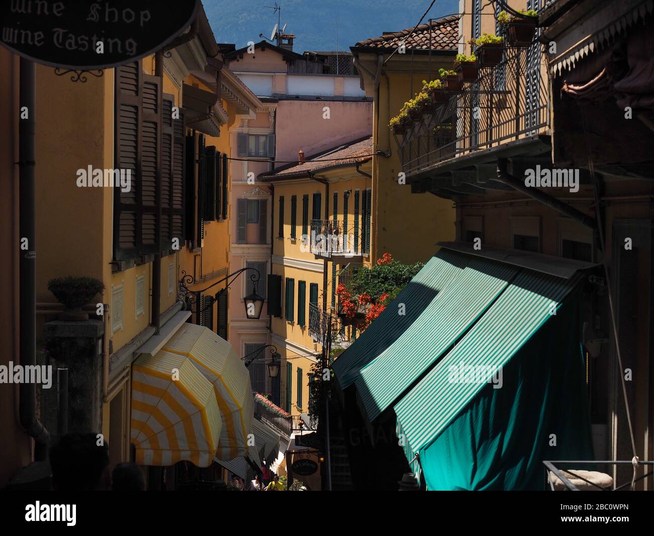 Town of Bellagio Lungolago Europa and Lakefront View Como Lake Stock