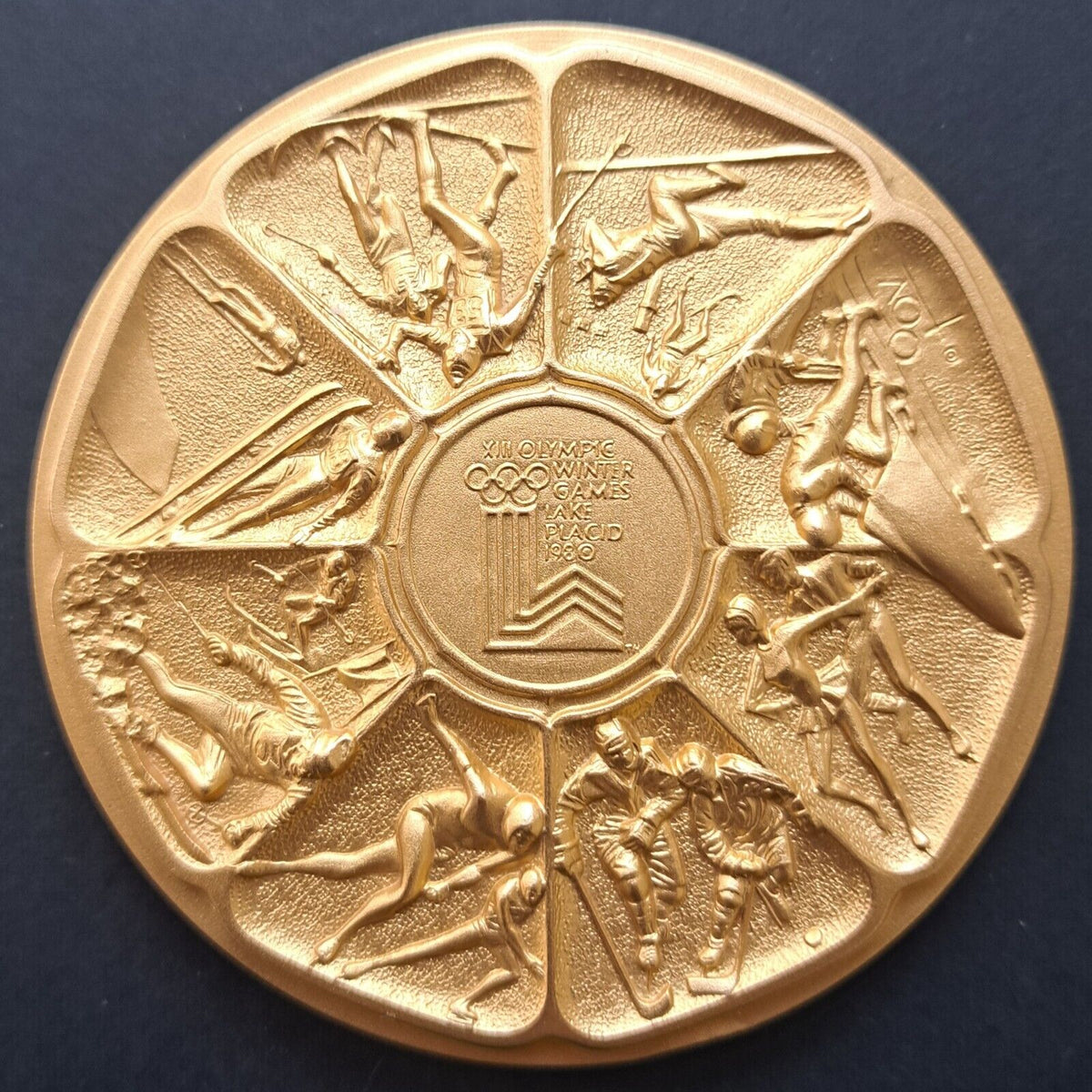 1980 Lake Placid XIII Olympic Winter Games Calendar Medal In Bronze Or