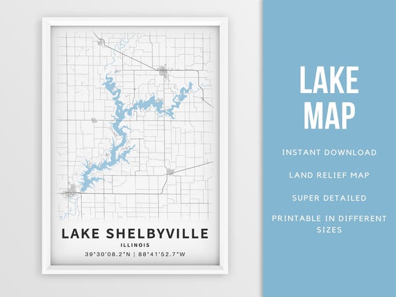Printable Map of Lake Shelbyville Illinois United States Etsy
