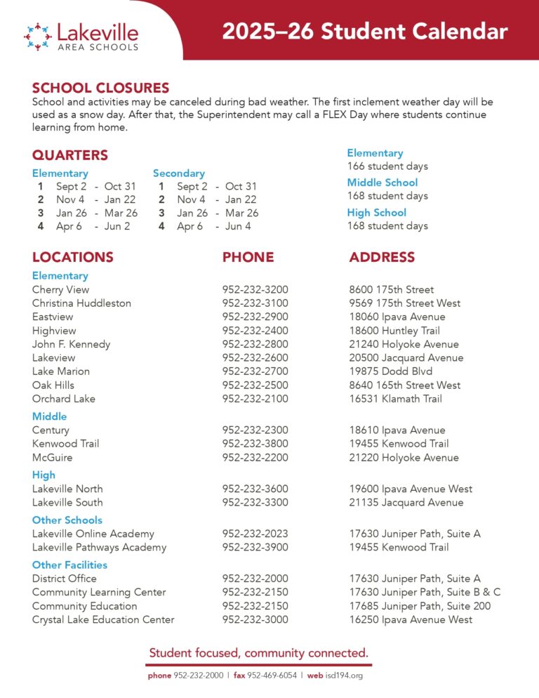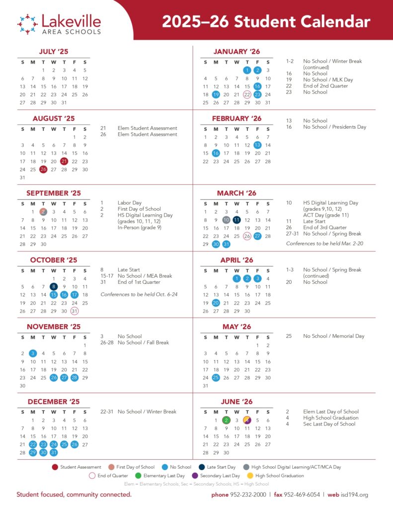 Lakeville Area Schools mn 25 26 Calendar Revised PDF EduCounty