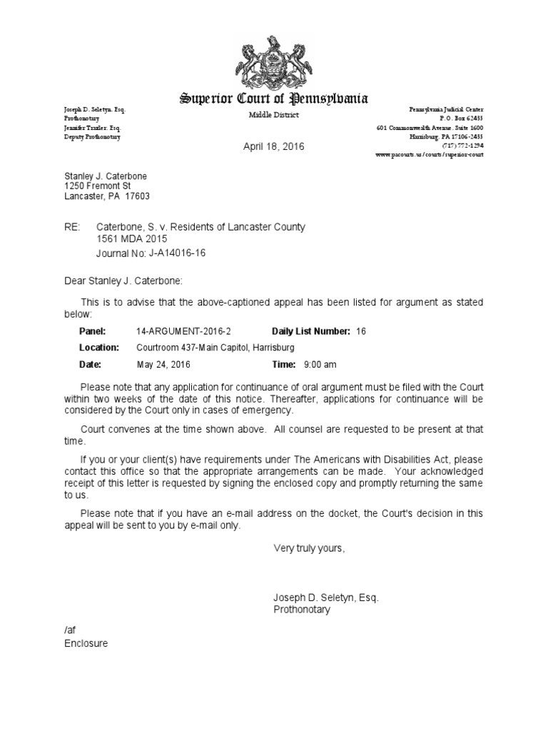 Superior Court Case No 1561 MDA 2015 CATERBONE v Lancaster County
