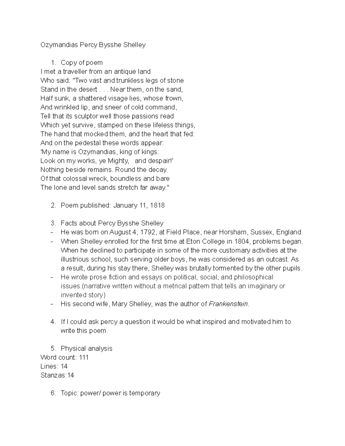 Ozymandias by shelley DOCX