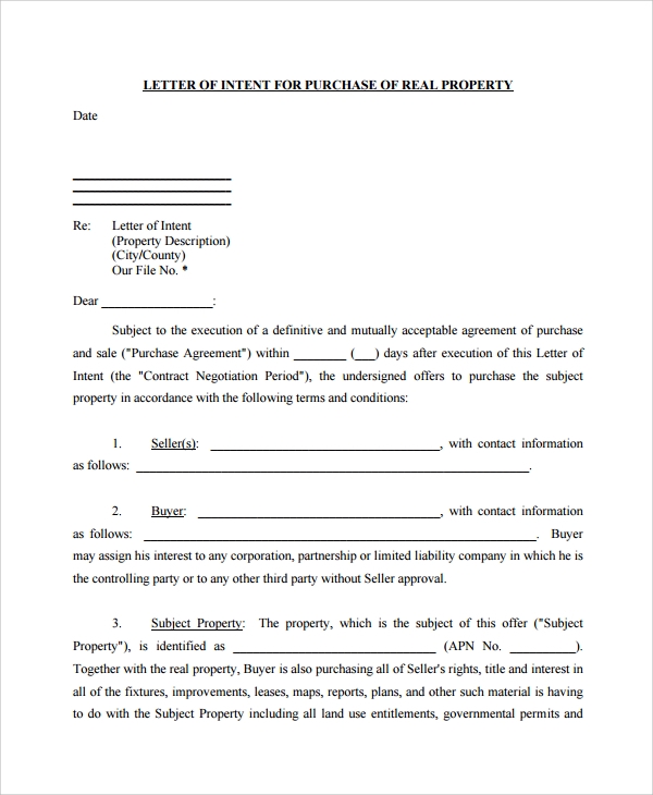 Letter Of Intent To Purchase Land Template ~ Resume Letter
