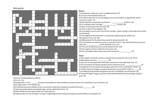 Monopoly Crossword Teaching Resources