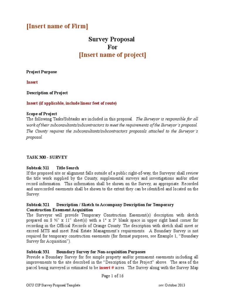 03 Survey Proposal Template PDF Surveying Easement