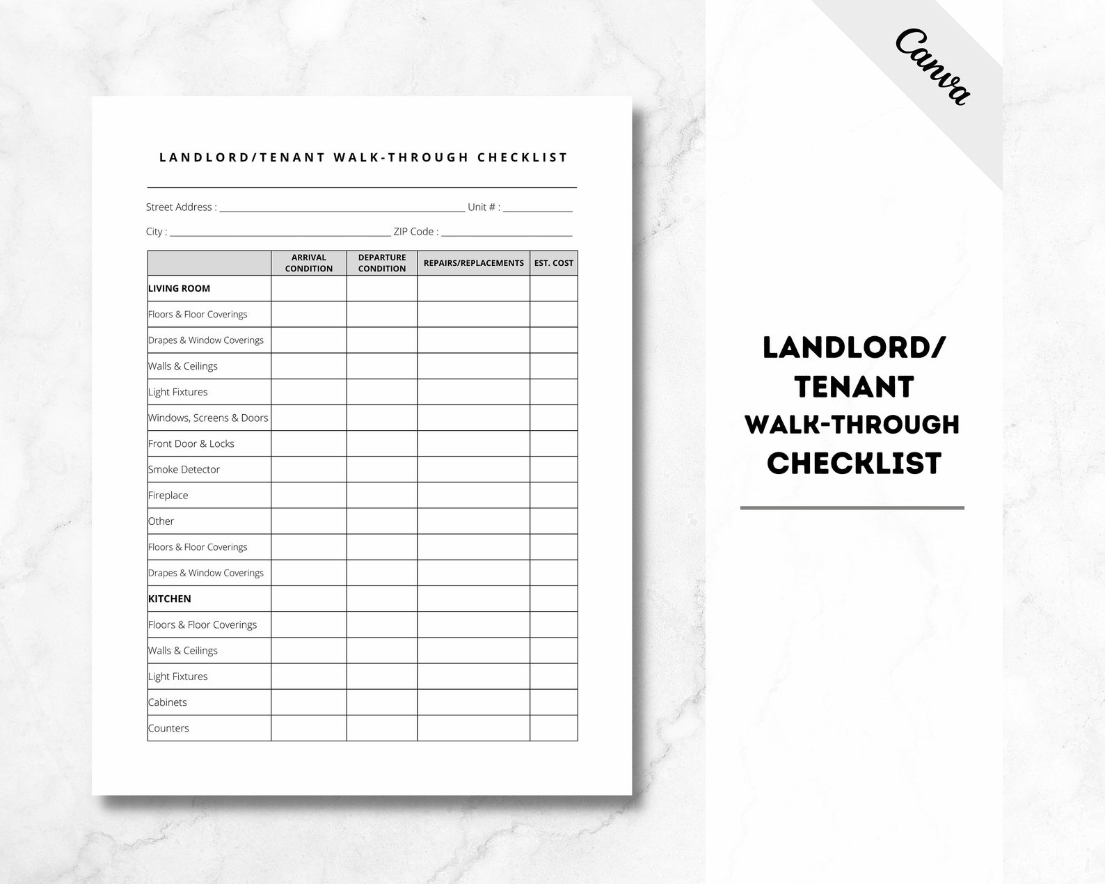 Landlord Tenant Walkthrough Checklist PDF File Available Etsy