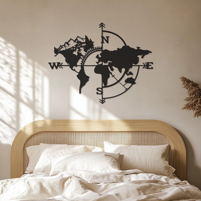 Compass Wall Art World Map Wall Art Metal Wall Decor Office Decor