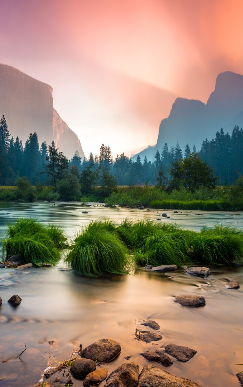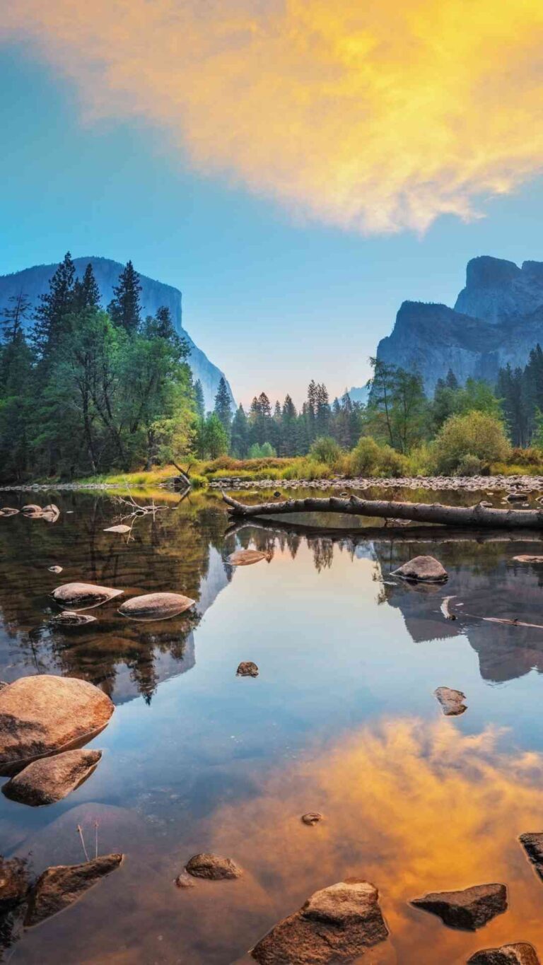 Landscape Nature Reflection Sunset Mountains River Yosemite National