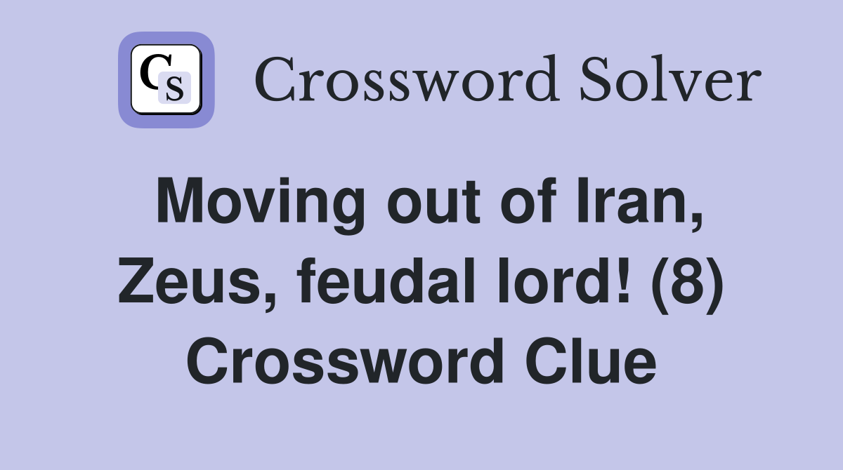 Moving out of Iran Zeus feudal lord (8) Crossword Clue Answers