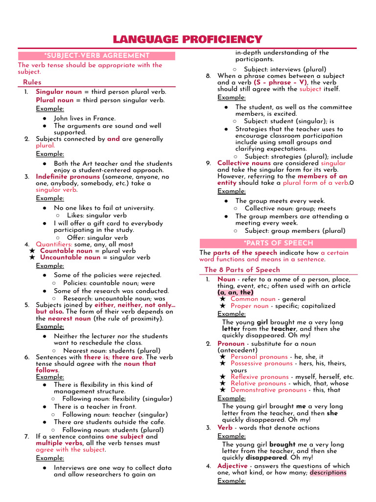 LANGUAGE PROFICIENCY Reviewer PDF Verb Adjective