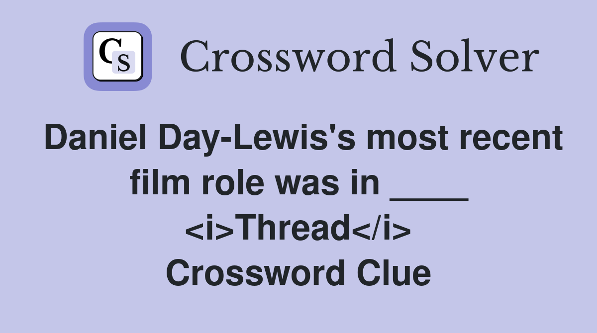 Daniel Day Lewis #39 s most recent film role was in Thread Crossword