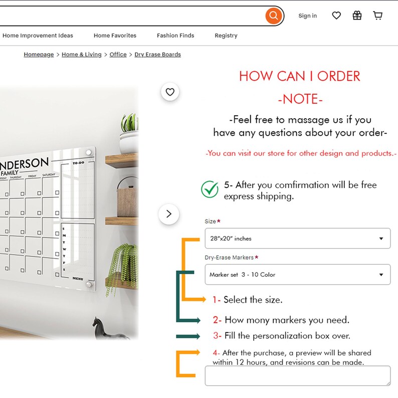 Large Wall Calendar Dry Erase Acrylic Calendar Custom Etsy