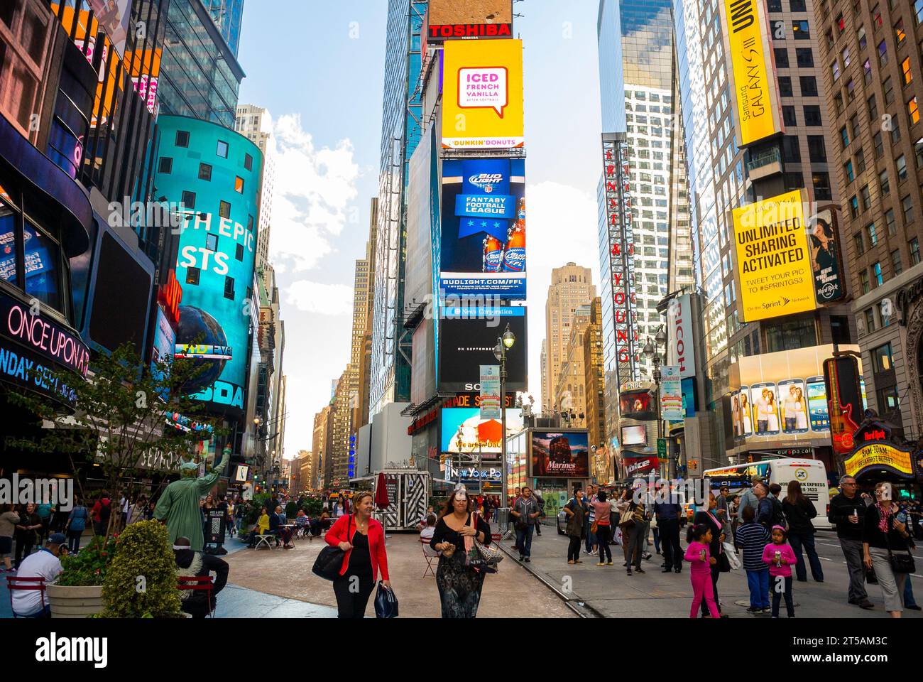 Large Crowd of People in Times Square at Night in Midtown Manhattan
