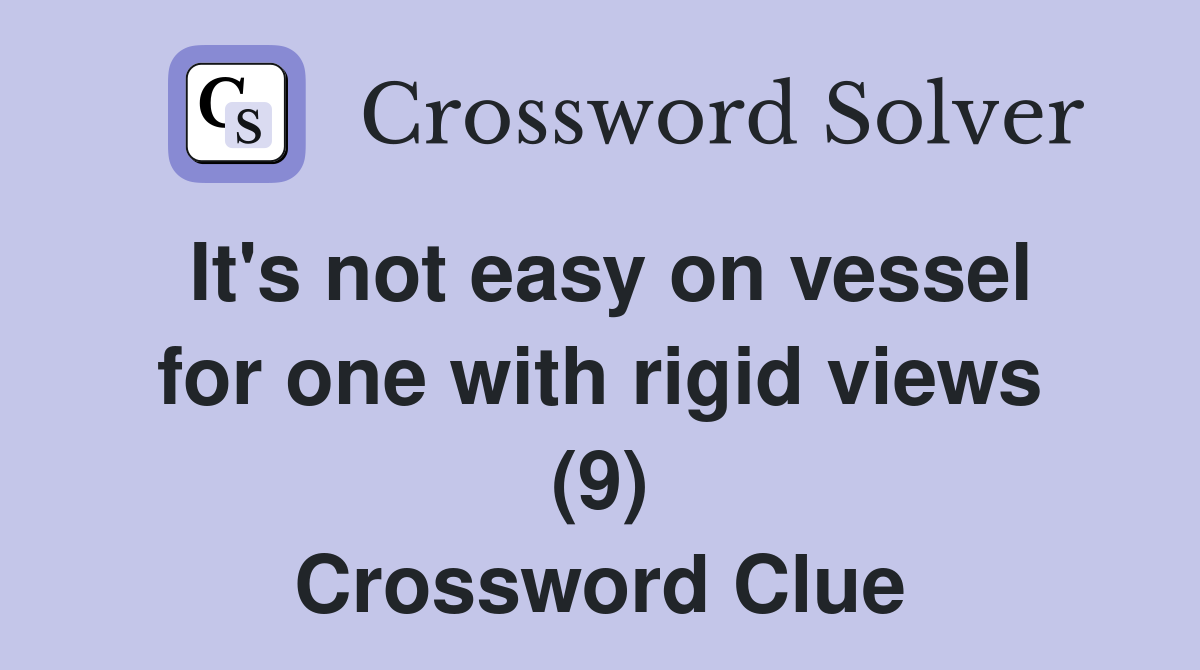 It #39 s not easy on vessel for one with rigid views (9) Crossword Clue