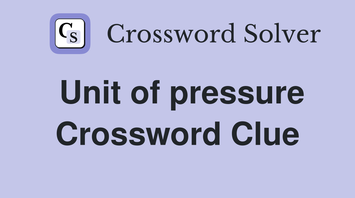 Unit of pressure Crossword Clue Answers Crossword Solver