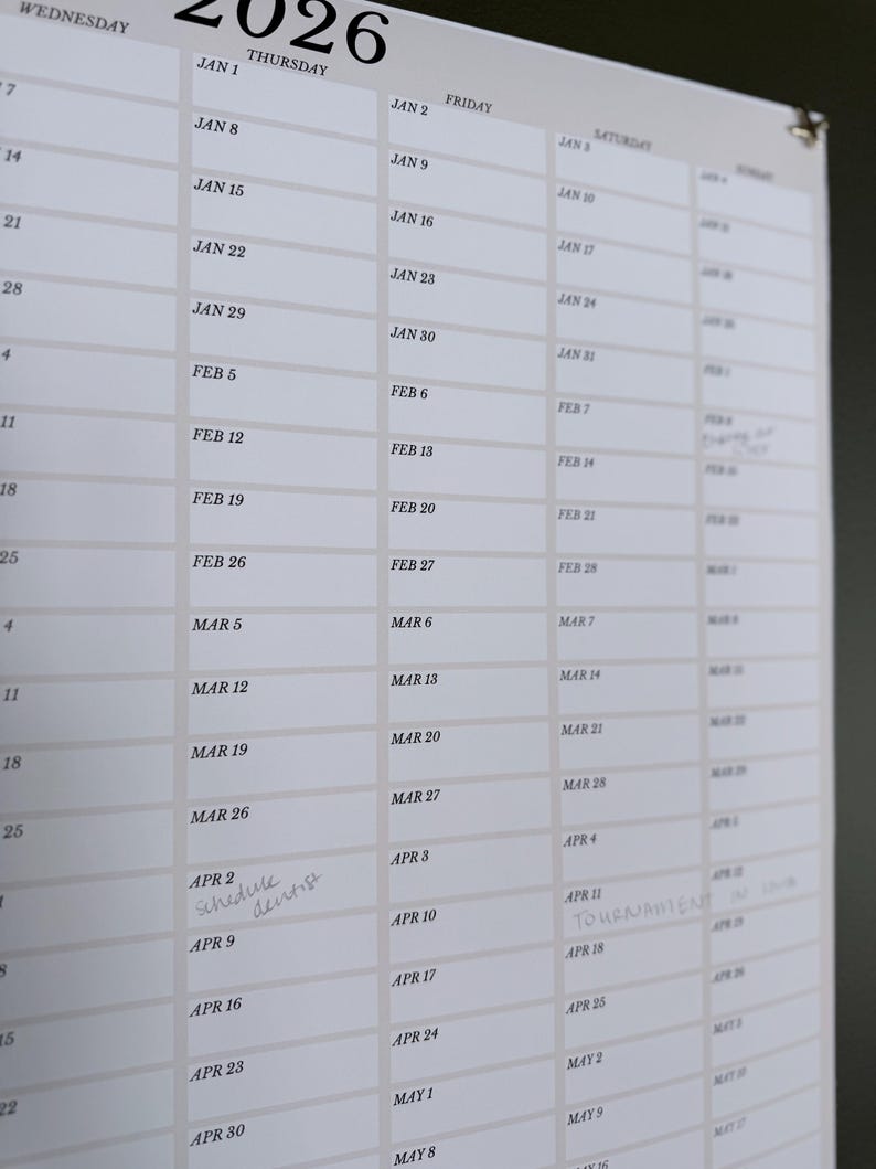 2026 Year Wall Calendar Large Paper Annual Yearly Planner Minimal