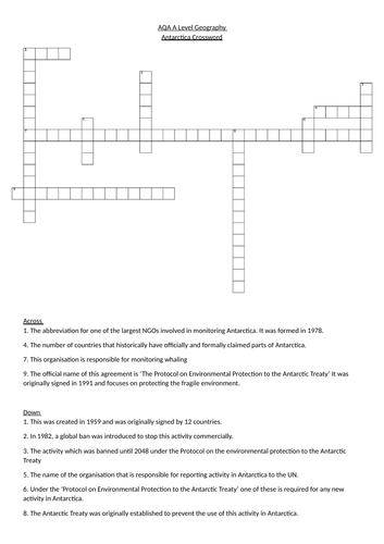 AQA A Level Geography Antarctica Revision Crossword (with answers