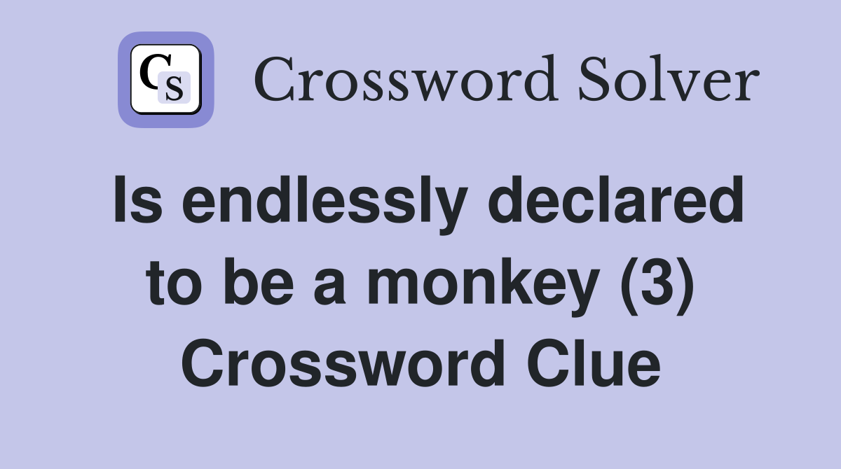 Is endlessly declared to be a monkey (3) Crossword Clue Answers
