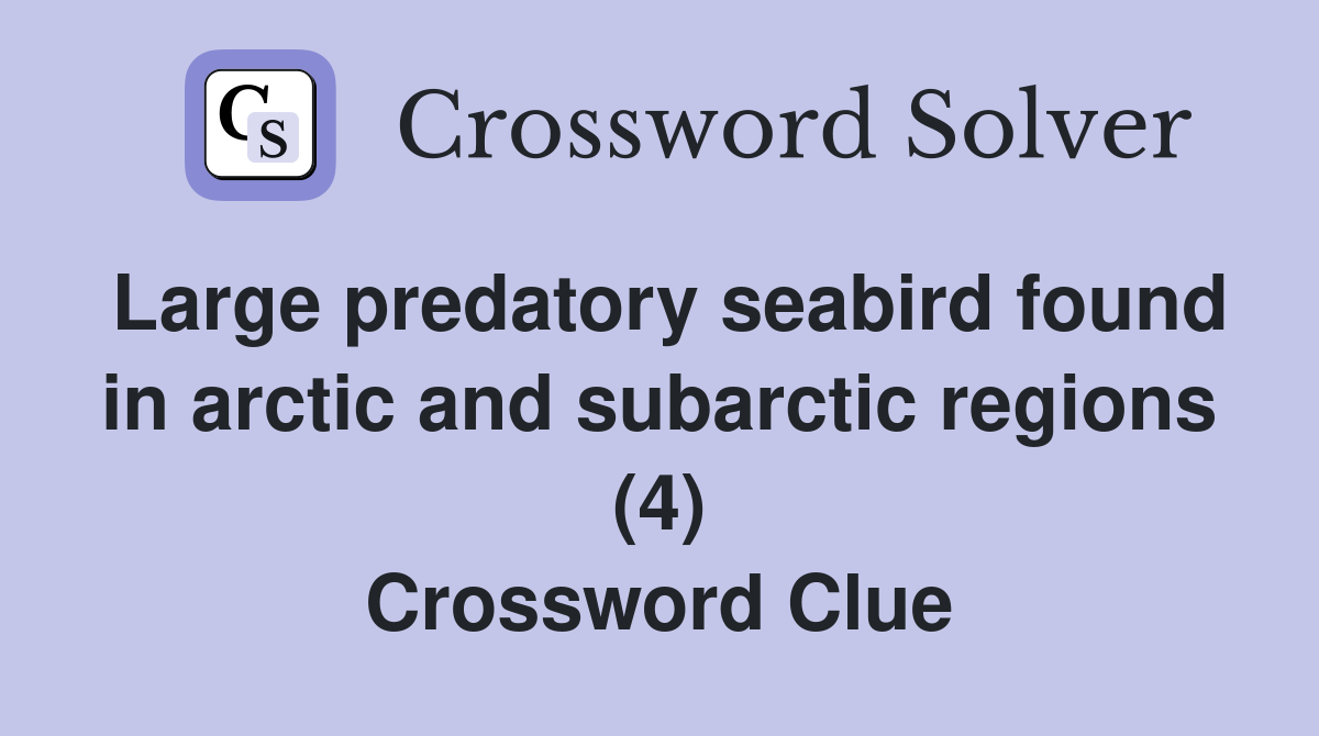 What is a large predatory gull like seabird? (4) Crossword Clue