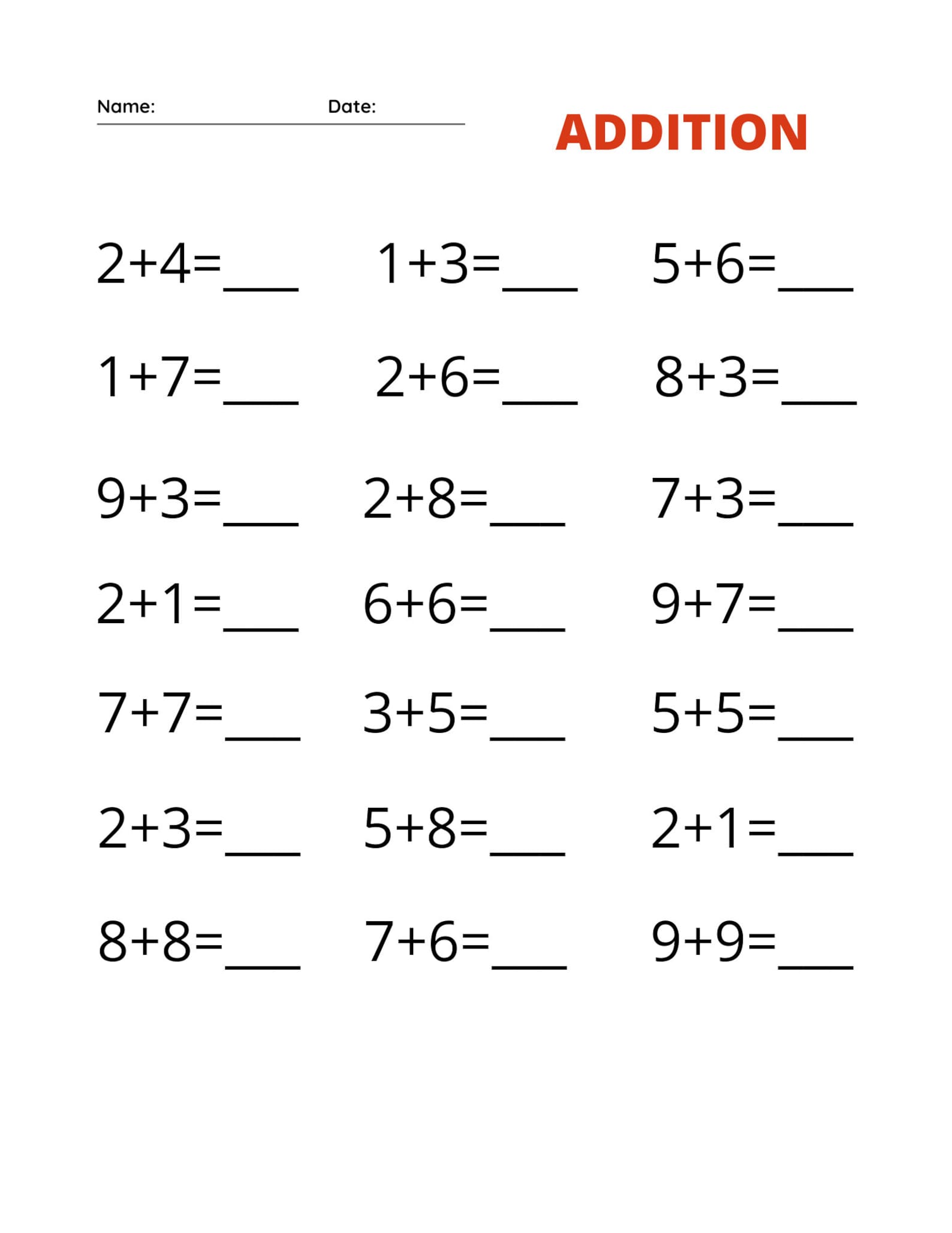 Addition Worksheet