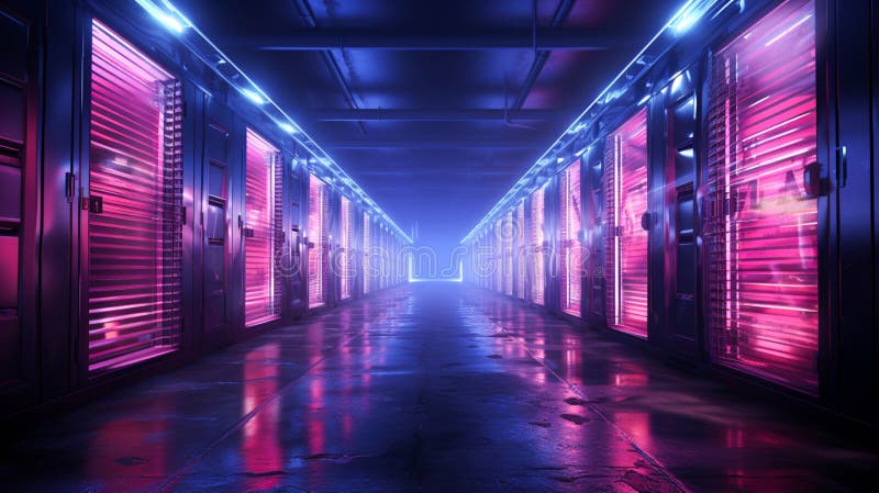 A Large Storage Unit with a Blue and Pink Light Stock Illustration