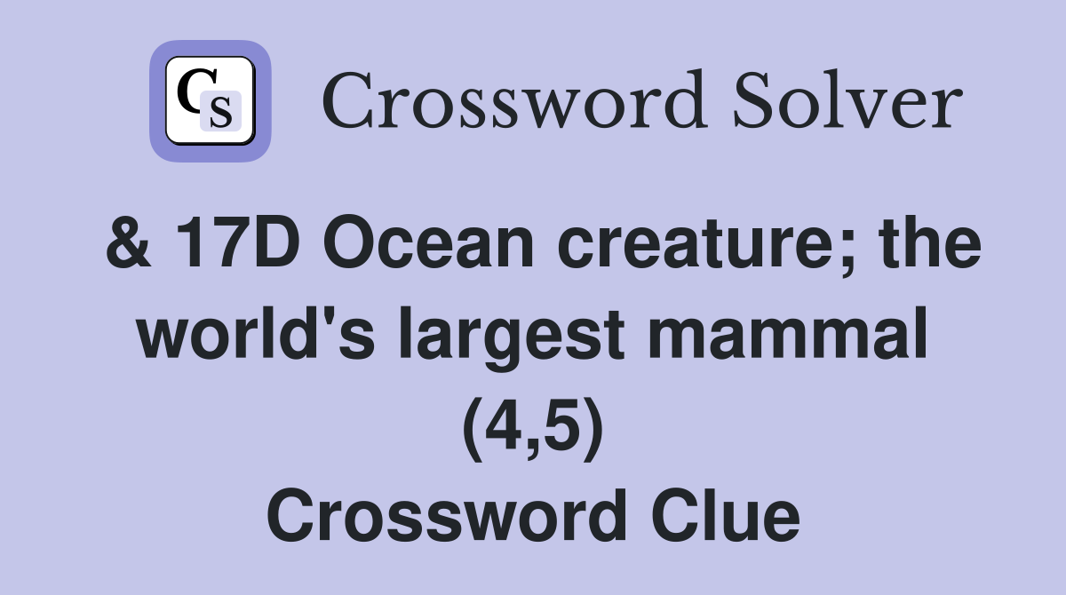 17D Ocean creature the world s largest mammal (4 5) Crossword Clue
