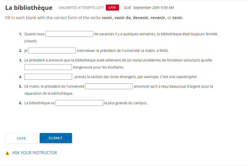 La bibliothèqueFill in the blanks Activity UNLIMITED Chegg com
