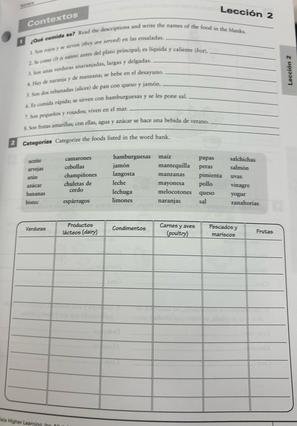 Solved: Nombre Contextos Lección 2 1 ¿Qué comida es? Read the