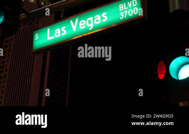 Fabulos Las Vegas traffic sign glowing on The Strip in sin city of USA