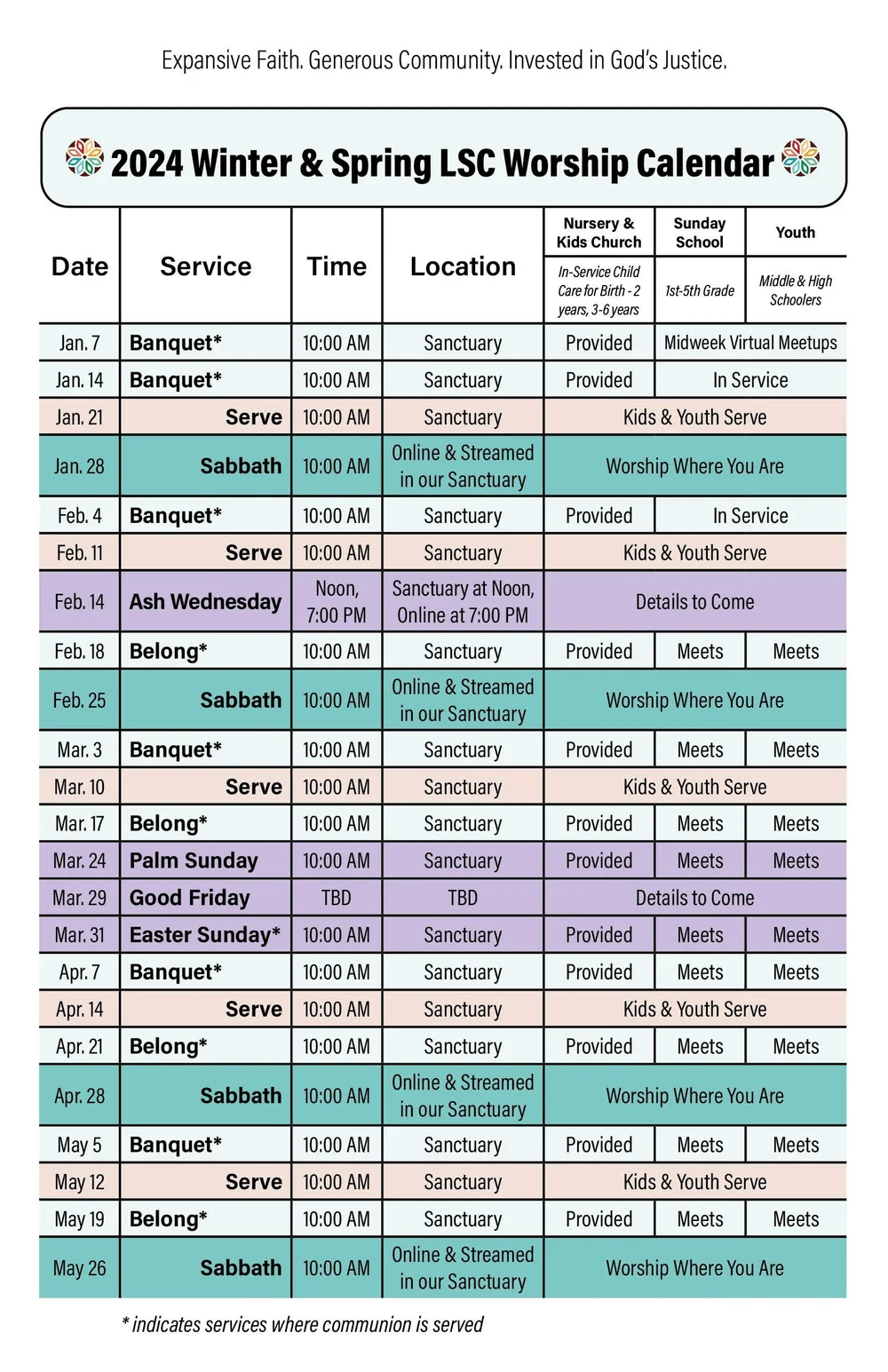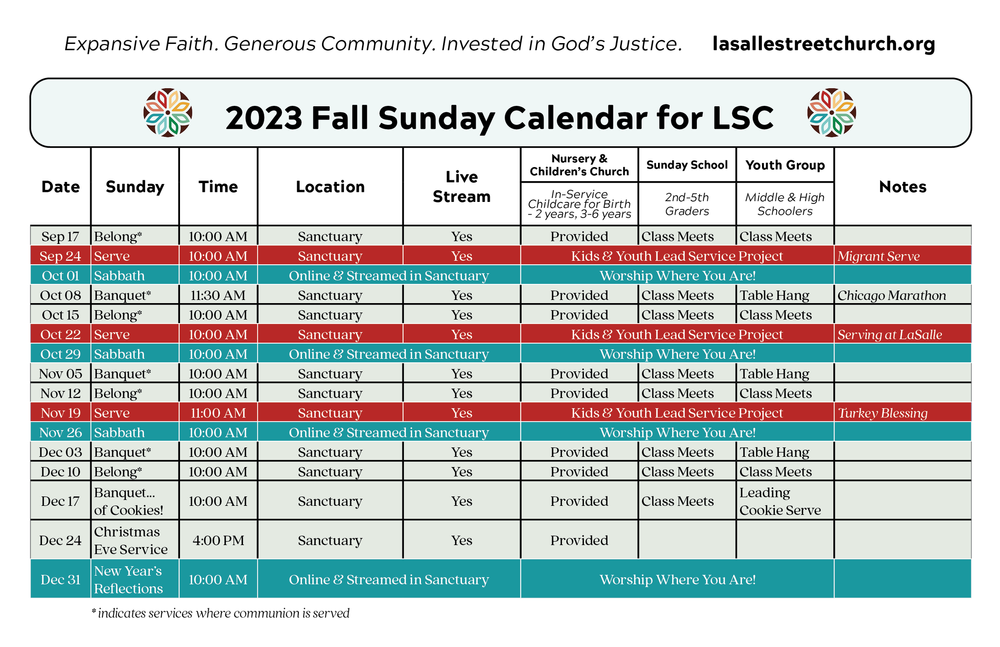 Worship Calendar LaSalle Street Church