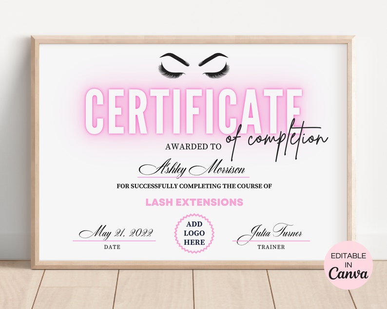 Lash Certificate of Completion Template Editable Makeup Etsy