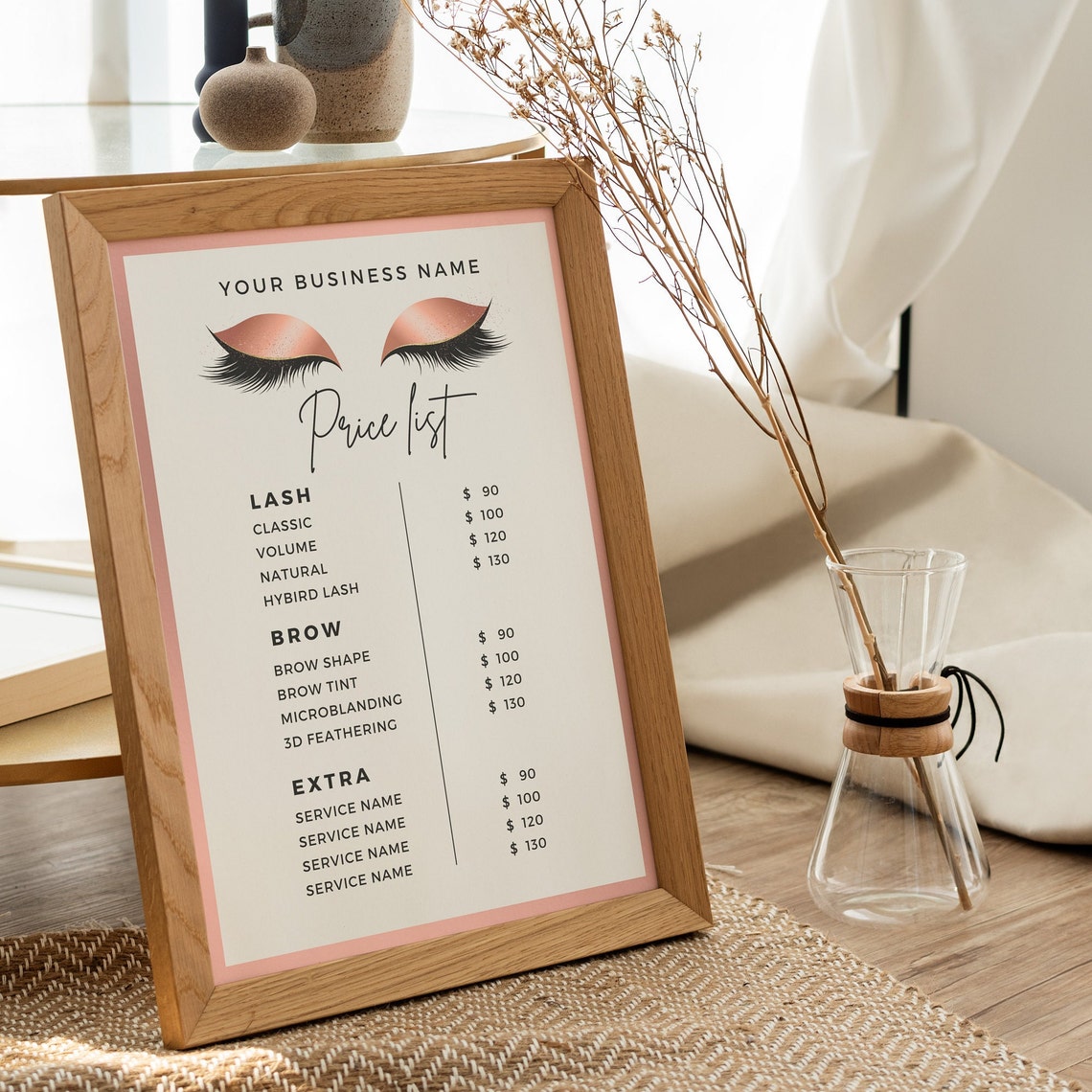 Eyelash Price List Template Eyelash Artist Price Sign Lash Etsy