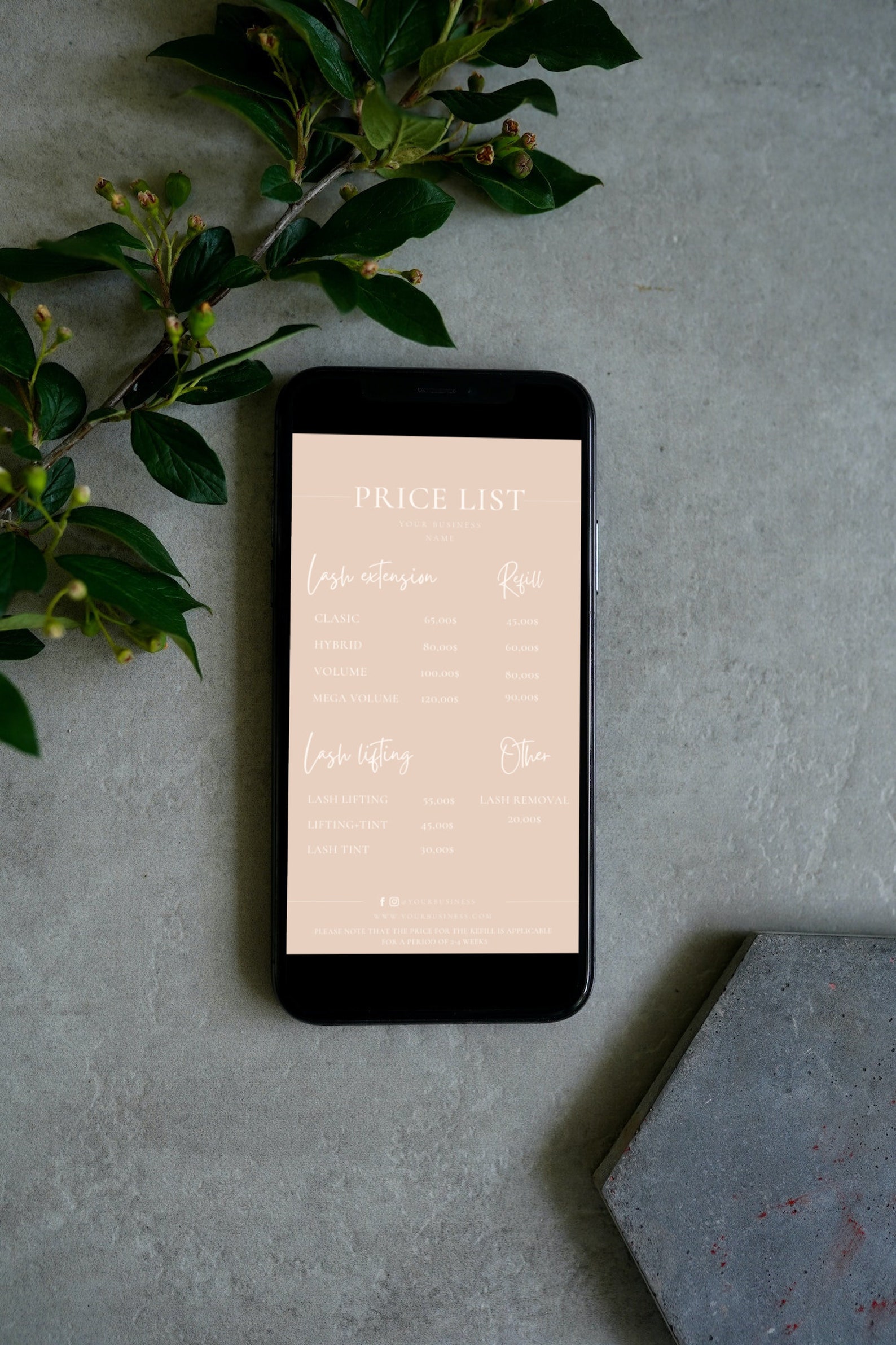 Lash Price List Template Digital Price List Electronic Price List Salon