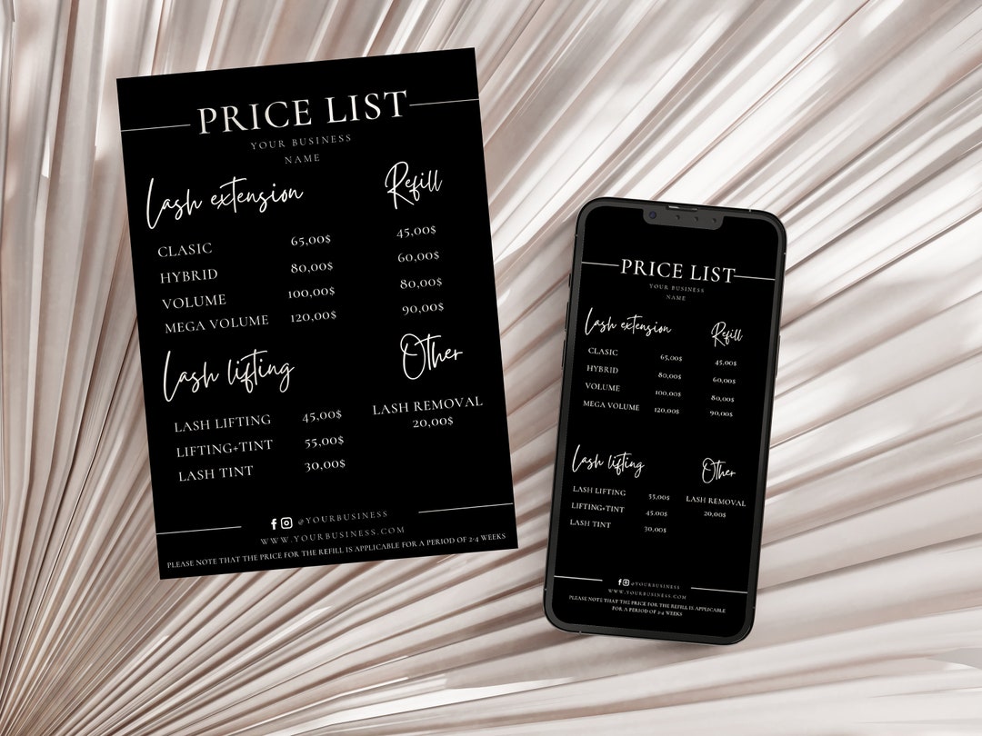 Lash Price List Template Price List Flyer Editable Price Etsy