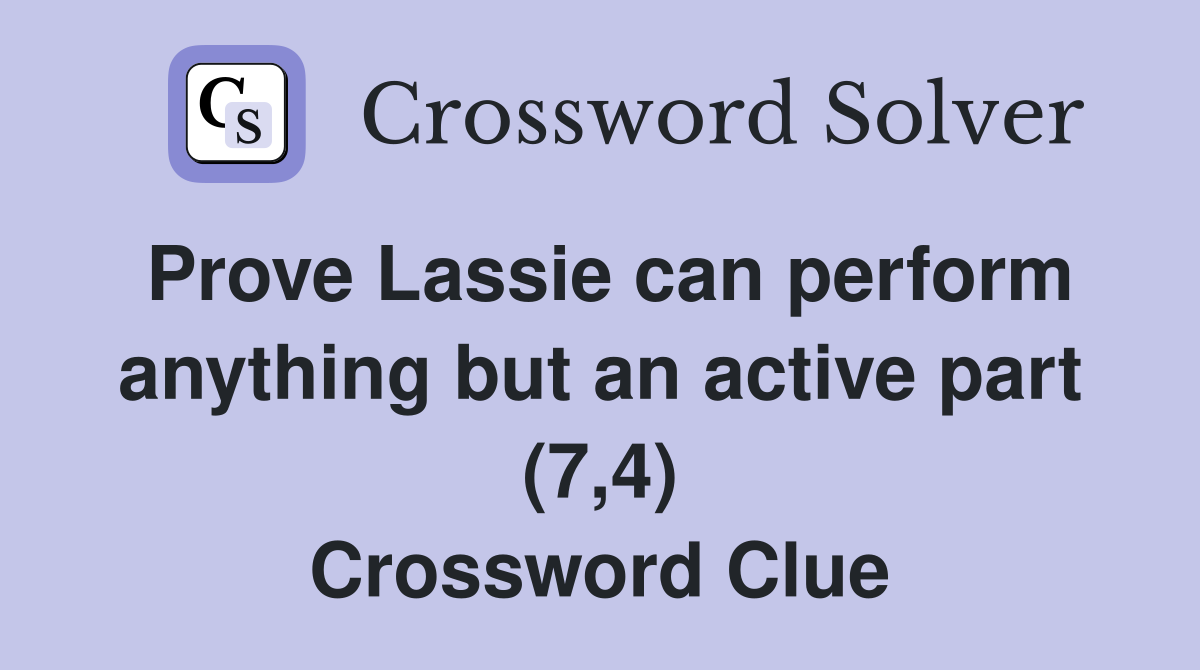 Prove Lassie can perform anything but an active part (7 4) Crossword