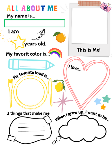 All About Me Worksheets First Day Week of School Getting to Know You