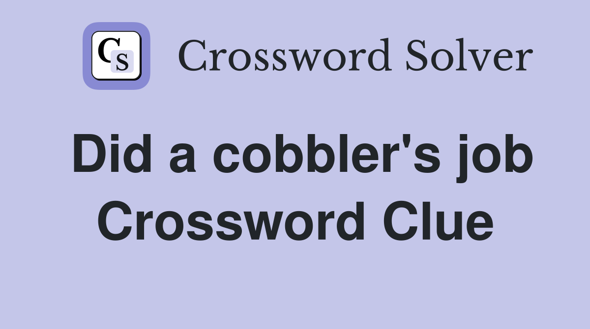 Did a cobbler #39 s job Crossword Clue Answers Crossword Solver